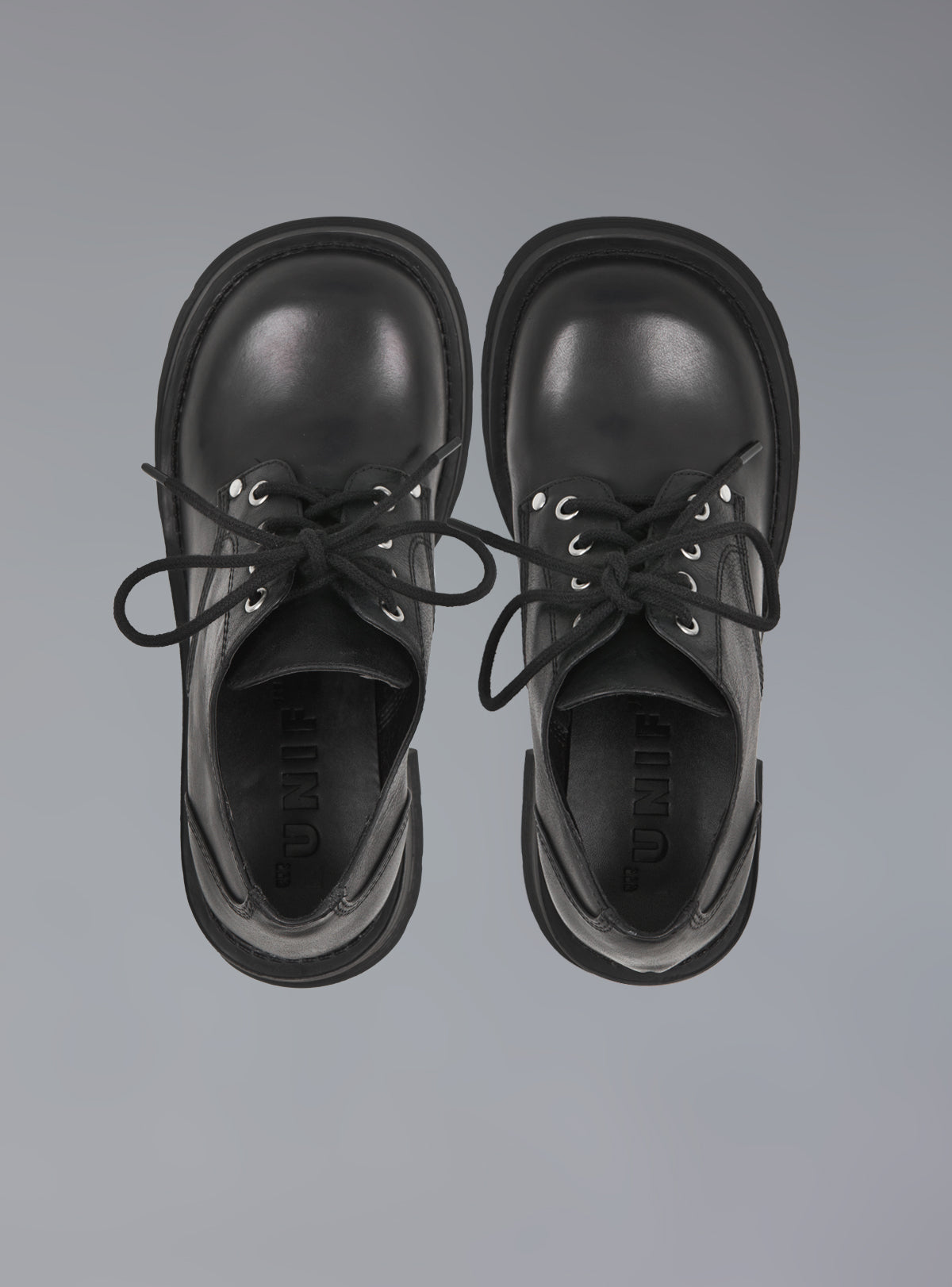 The Prue Shoe is a platform oxford leather shoe with a solid rubber platform and sole. 90's inspired rounded toe with metal eyelets and rivets. The front platform is 1" to a 3" heel. FIt is true to size.